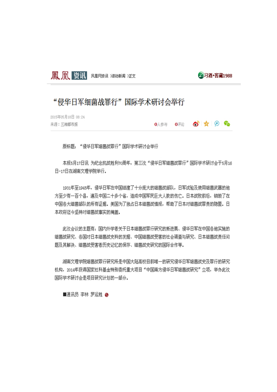 “侵华日军细菌战罪行”国际学术研讨会举行凤凰网5月18日