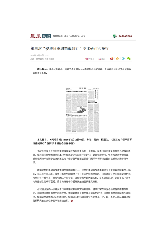第三次“侵华日军细菌战罪行“学术研讨会举行凤凰网6月11日