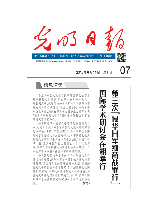 第三次“侵华日军细菌战罪行“国际学术研讨会在湘举行光明日报6月11日