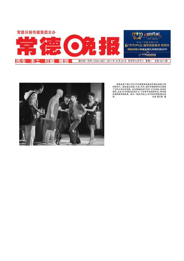 《常德晚报》话剧《人与牛排的恋情》获得省大学生艺术展演一等奖