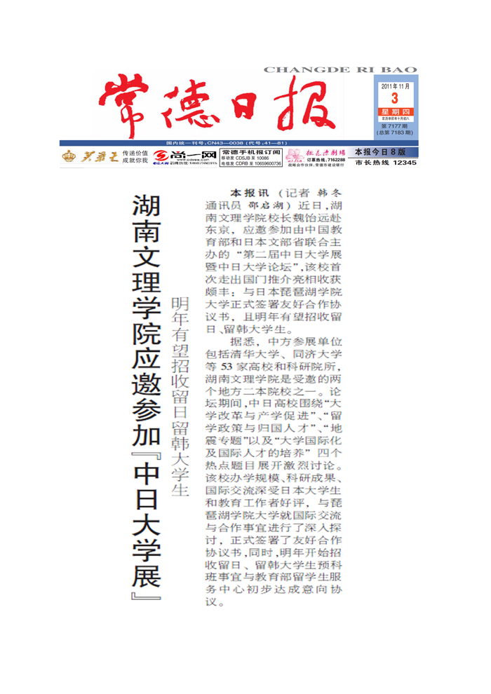 《常德日报》湖南文理学院应邀参加“中日大学展”