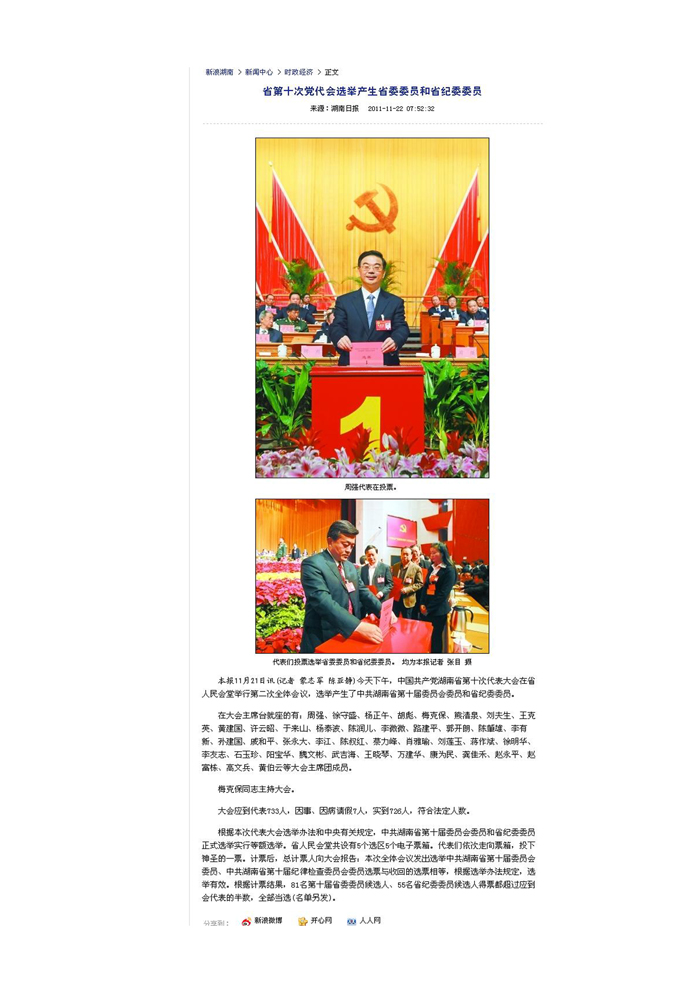 《新浪网》省第十次党代会选举产生省委委员和省纪委委员