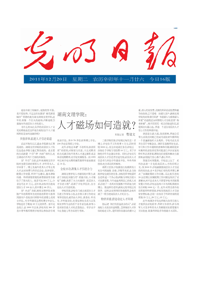 《光明日报》湖南文理学院:人才磁场如何造就?