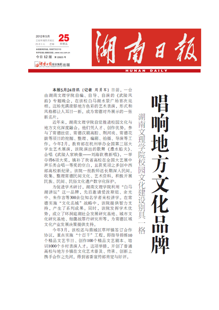 《湖南日报》:唱响地方文化品牌