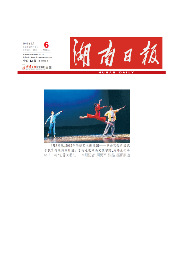 《湖南日报》:中央芭蕾舞团演出专场走进湖南文理学院