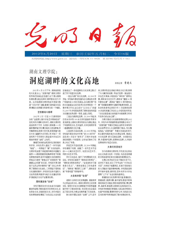 《光明日报》:湖南文理学院--洞庭湖畔的文化高地