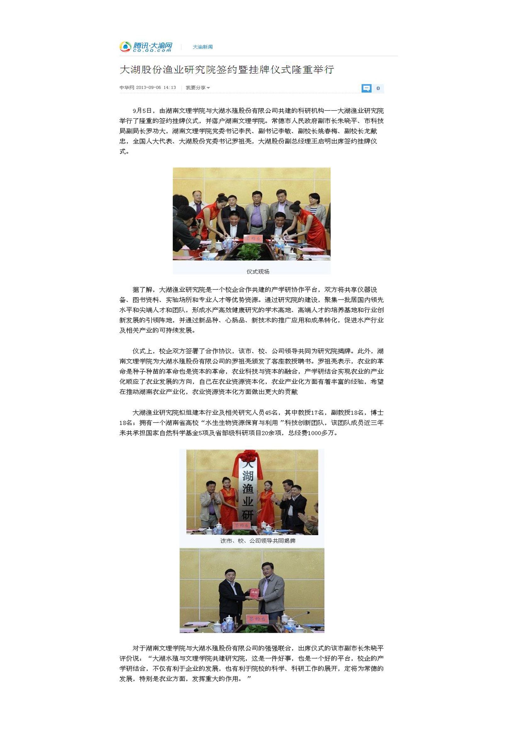 大湖股份渔业研究院签约暨挂牌仪式隆重举行腾讯网