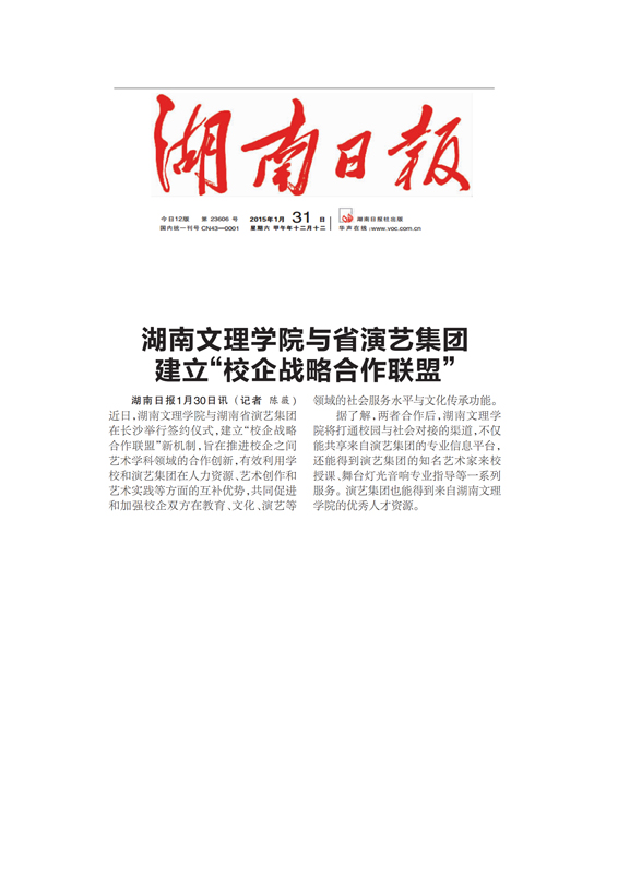 湖南文理学院与省演艺集团建立“校企战略合作联盟湖南日报1月31日